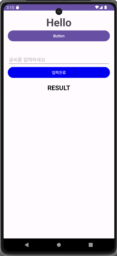 밑 입력완료 버튼을 누르면 EditText 에 입력한 글자가 RESULT에 출력되는 위젯을 만들어 볼것이다