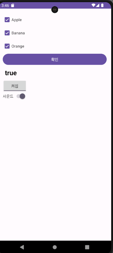 그외에 스위치를 사용하여 사운드가 on 되면 true가 출력되게 해보았다