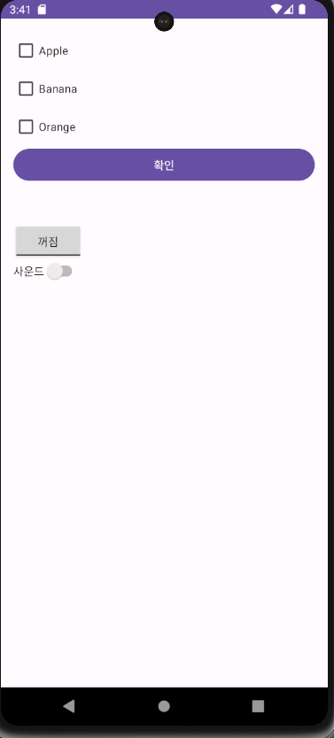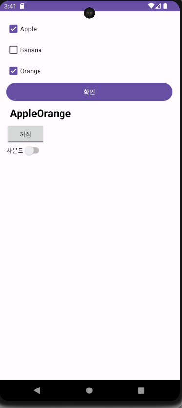 체크박스에 체크하면 버튼 아래에 글자가 붙어서 출력되는 기능을 가진 어플을 만들어 볼것이다