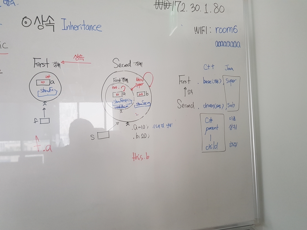 상속을 표현할때 화살표 방향이 Second 객체(자식) -> First 객체(부모) 이런식으로 표현됨